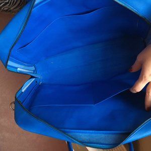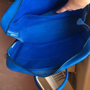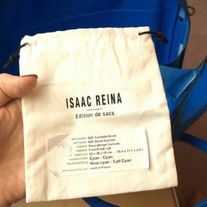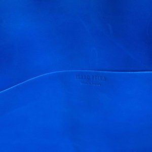Beautiful hardly-used Isaac Reina "Bond" satchel from Summer 2015 collection. They call the color "cyan" but it's more of a light bold cobalt blue, in an incredibly soft, smooth, supple full-grain calfskin. Detachable, adjustable crossbody strap with rhodium-tone hardware (unknown what the actual metal is).