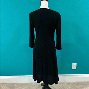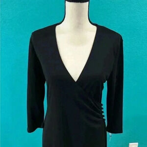 Isaac mizrahi black maxi faux wrap dress in size medium. In new without tags condition. Simple and elegant style. Jersey knit, v-neck. Four side buttons with ruching. 3/4 sleeves.