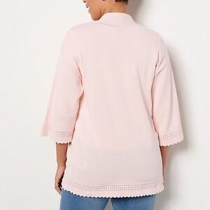 Isaac Mizrahi Live! Scallop Trim Sweater Cardigan with Pockets