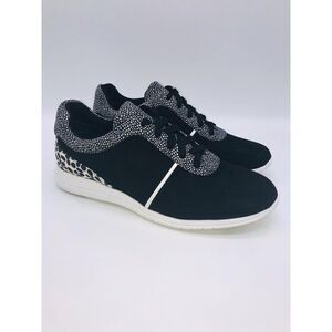 Isaac Mizrahi Women Contrast Dot Lace-Up Faux Suede Sneakers- BLACK.