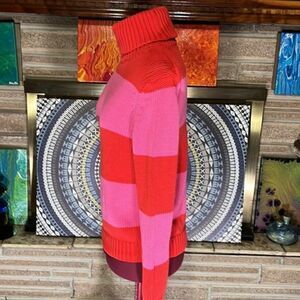 Isaac Mizrahi Womens Pink & Red Rugby Striped Knit Turtleneck Sweater Size Small