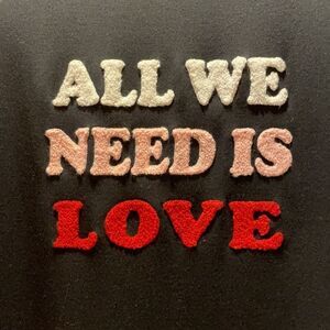 Isaac Mizrahi New York Meredith All We Need is Love Statement Tunic, size medium. Excellent used condition. Care & content tags in photos. Super soft and cozy! Great top for Valentine’s Day!