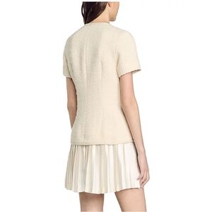 Main fabric: 73% cotton/9% alpaca/9% virgin wool/5% polyamide/4% modal; lining: 100% polyester; braid: 47% acrylic/47% acetate/6% polyester; secondary fabric: 100% polyester