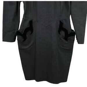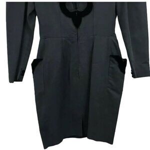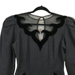 Isabel Allard Size 12 1980s Velvet Trim Puff Sleeve Tulip Dress Semi Sheer