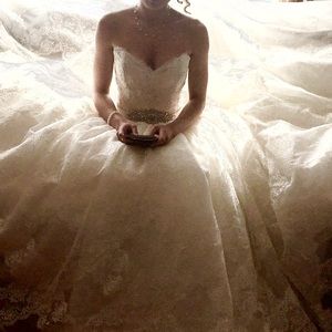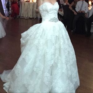 Altered and cut to fit 5'1 petite woman wearing 4inch heels fits like 00 with 32B chest cleaned and preserved with veil
