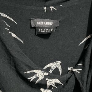 Isabel De Pedro Dress Womens Sz 10 Black Jersey Draped Birds Sparrow Sleeveless