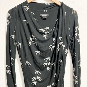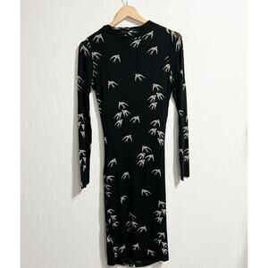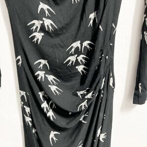 Isabel De Pedro Dress Womens Sz 10 Black Jersey Draped Birds Sparrow Long Sleeve