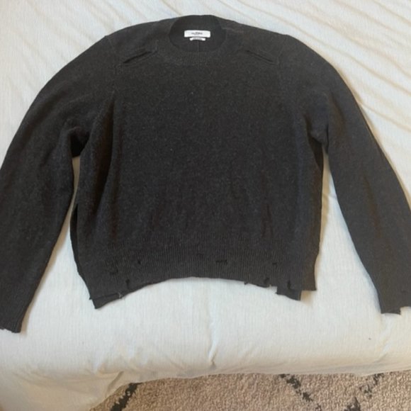 Deliberate aged holes on hems and cuffs - as photographed. As well as two little peekaboo cut outs at collar, also in picture.