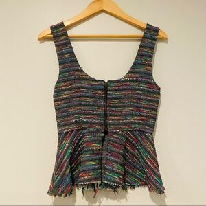 Isabel Lu Colorful Tweed Peplum Zip Back Tank Top Size Medium