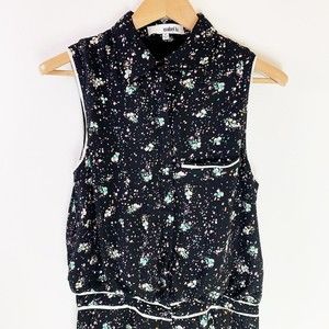 Isabel Lu Womens Black Floral Romper Jumper Size Medium Sleeveless Button Front