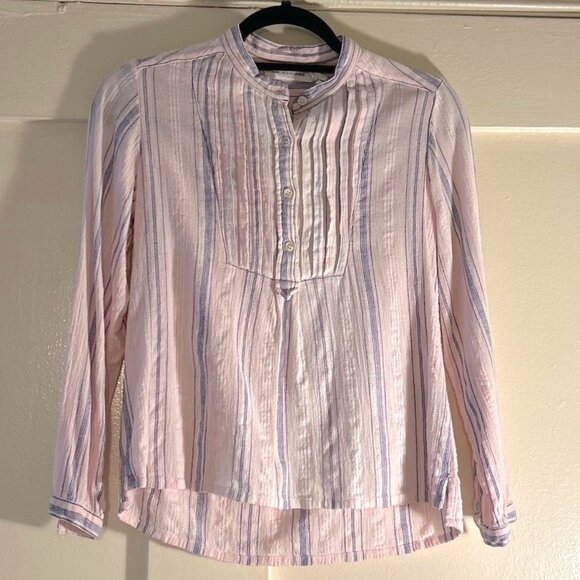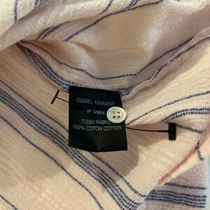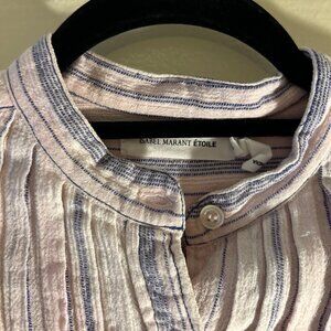 Isabel Marant 100% cotton top in light pink and blue. Front button closure. French size 36 but fits like an XS. One minor spot on the left front, otherwise good condition. 3/4 sleeves.