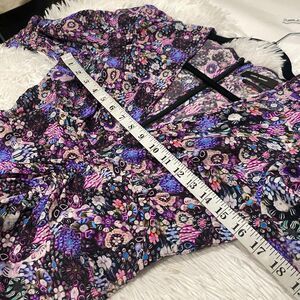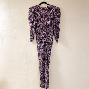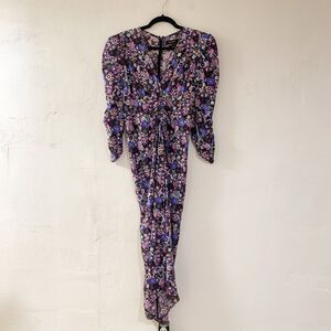 SO beautiful and in excellent preowned condition! Albini floral-print midi dress from ISABEL MARANT featuring dark purple, stretch-silk, V-neck, three-quarter length sleeves, ruched bodice and front slit. Silk 91%, Spandex/Elastane 9%.