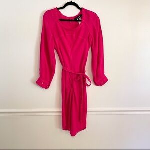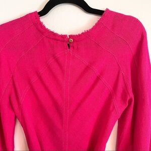 Isabel Marant Barbiecore Midi Dress in Pink. Women's Size Small. 100% silk slub weave knit, lightweight, noil silk (looks and feels more like cotton) long sleeve, dolphin hem, adjustable waist tie, button closure at the back, puff sleeves, Fuschia pink, round neckline. Approximate measurements: 36" chest, 32" waist, 42" length (size not listed, sizing estimated from measurements). Very good pre-owned condition. Minor pulling throughout, small surface blemish mark at the front and should come clean. See the pictures for reference.