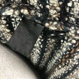 Hint of blue and tan and metallic silver in a black stripe. 4 small front pockets (all mostly still stitched closed from original shipping)