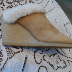 Isabel Marant Beige Suede Calfskin Wedge Mules w/Lamb Shearling Lining Size 39