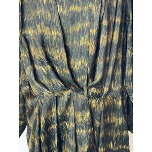 Isabel Marant Black And Gold Long Sleeve Pleated Draped Mini Dress Size M