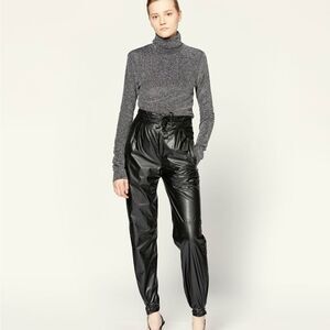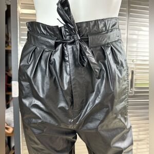 Isabel Marant Duard Black Faux Leather Tie High Waisted Pants NWT