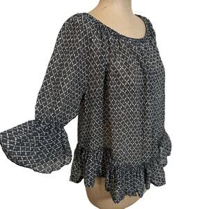 Isabel Marant Blouse Black Silk Sheer Ruffle Hem 3/4 sleeve