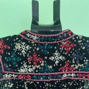 Isabel Marant Blouse Sz 36 S Black Embroidered Boho Tunic Holiday Snowflakes