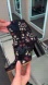 Black suede with embroidery, navy/burgundy/cream embroidery, stacked heel, zipper along back heel