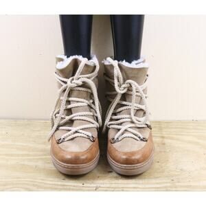 Isabel Marant Boots 40 Brown Leather Shearling Nowles Hidden Wedge Ankle Bootie