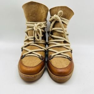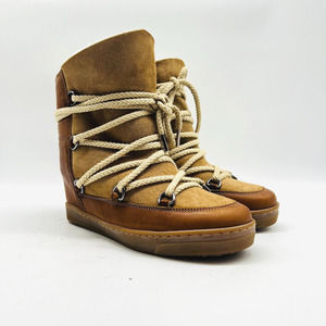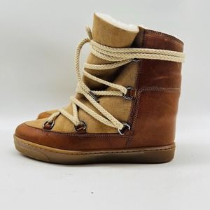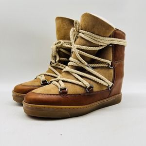 Isabel Marant Boots Womens 37 7 Nowles Brown Suede Shearling Hidden Wedge Shoes