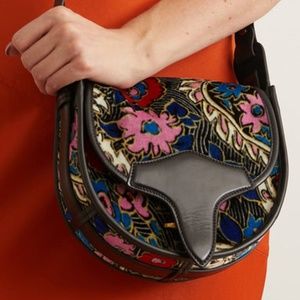 Isabel Marant Botsy Blue Velvet Floral Paisley Leather Shoulder Saddle Bag NWT