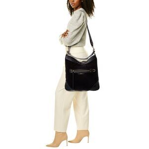 Price as marked. About the brand: Inspired by real life. Botsy Suede & Leather Shoulder Bag in black suede and leather and gold-tone hardware with zippered pocket Measures 14.2in wide x 12.2in high x 2in deep Top handle drops 7in Adjustable and removable shoulder strap drops 23in Please note: All measurements were taken by hand and are approximate; slight variations may occur. Our products are 100% genuine. In some cases we purchase merchandise from trusted independent suppliers and not directly from the brand owner. In all cases we stand by the authenticity of every product sold on our site.