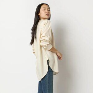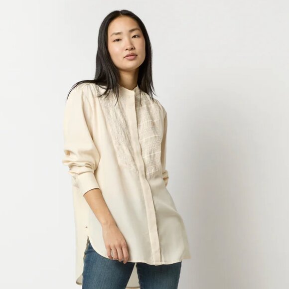Cute relaxed, romantic Ecru top! I've worn it a few times, but it's a little big for me. Great condition--like new! This is a classic embroidered tunic with a delicate band collar and a high-low hem.