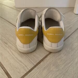 These Isabel Marant sneakers feature a sleek and minimalist design, crafted in a striking red and white colorway. The shoes are made from high-quality materials, ensuring both comfort and durability. Perfect for casual wear, they offer a clean and classic aesthetic that complements any outfit.