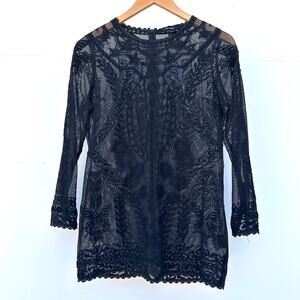 Isabel Marant Delicate Lace Sheer Long Sleeve Black Blouse Cotton Small