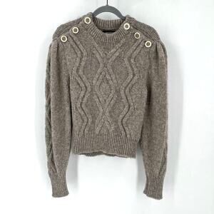 Features/Tags: 84% Baby Alpaca 8% merino wool 8% polyamide, crew neck, mid-weight, cable knit, balloon sleeves, shoulder buttons