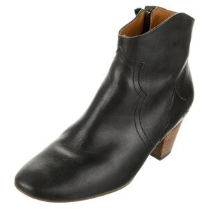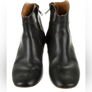 Isabel Marant Dicker Leather Ankle Boots Black Western Booties Zip-Up Size 37 (6.5)