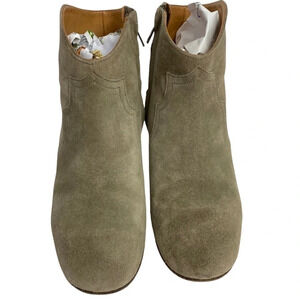 Isabel Marant Dicker Suede Boots Womens 38 - 7.5 Ankle Booties Heels Shoes Taupe