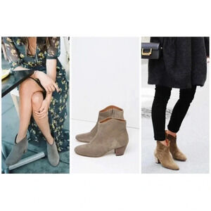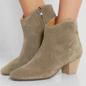 Isabel Marant Dicker Taupe Suede Leather Western Ankle Boots Bootie Zip Closure