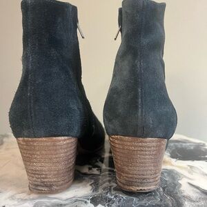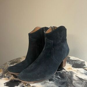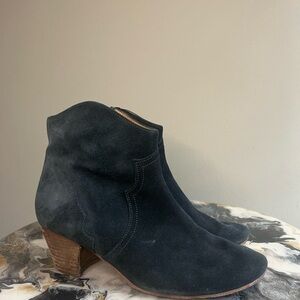 Beautiful black leather suede and leather lined boots fr designer Isabel marant. Western stitching. There are points of wear on these shoes, most notably at the base of both heels and the insole as pictured. They are still wearable but price reflects this. External suede shows a little wear as photographed as well but still have held up very well given the quality materials and constructions. Size EU 38. Made in France. Translates to a US 7.5/8