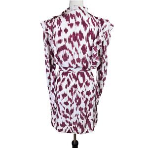 Isabel Marant Etoile 38 White Maroon Tie Dye 100% Silk Long Sleeve Ruffle Dress