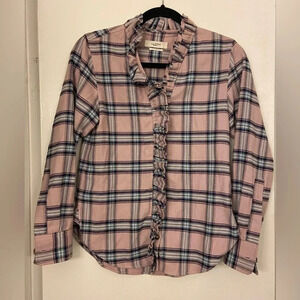 Isabel Marant Etoile Awendy Plaid Ruffle Button Down Flannel Long Sleeve Size 2