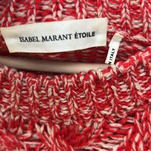 Isabel Marant Etoile Cable Knit Wool Sweater Red and Cream Italian Luxury Sz 38 in Excellent Pre-Owned Condition. There is some minor pilling but overall this sweater is in beautiful condition. Please see photos for item condition description.