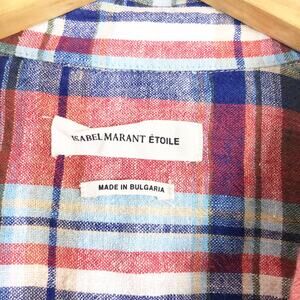 Isabel Marant Etoile Cotton Linen Plaid Buttondown Top Size 36 Flannel Check