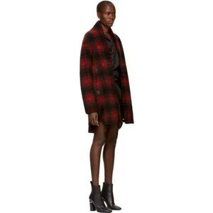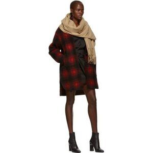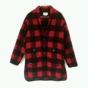 Isabel Marant Etoile Gabrie Plaid Checkered Wool Blend Coat Red and Black Medium
