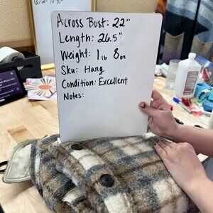 This coat combines a plaid design with a premium wool-blend fabric. Its button-front style and double pocket details create a stylish and functional outerwear piece.