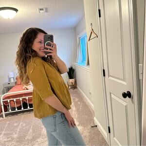 I adore this super rare designer Isabel Marant Etoile mustard golden yellow cotton bee floral embroidered monochromatic short sleeve top/blouse
