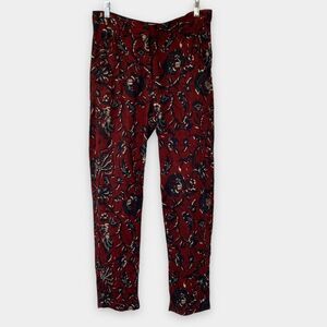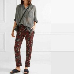 Isabel Marant Etoile Janelle Pants US 4 FR 36 Boho Floral Burgundy Cotton Voile