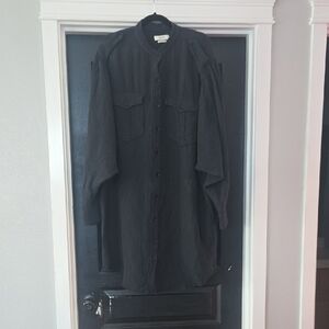 Isabel Marant Etoile Jasia faded black button down tunic dress. Size 42 which is equivalent to a size XL on Isabel Marant size chart. 100% cotton. The dress doesn't have any stretch but is oversized. Can be worn belted or not (does not come with a belt). This dress has a raw hem. Very good pre-owned condition. There are some faded spots on the left side on the front and back. It isn't super noticeable and could hide with a belt or be dyed.