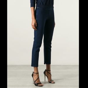 Brand New with Tags. French Size 36 which translates to US 4 (I personally think they run a little small, closer to a 0-2, perhaps because they're all cotton and have no give??) Approx 26" inseam. Ankle length skinny jean. Side hook and zip closure. Small slit detailing at the ankle.