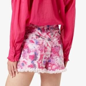 Isabel Marant Étoile's Lesiabb denim shorts are tie-dyed in pink and purple tones which feel so summery