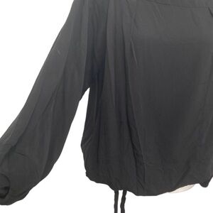 Simple and stylish this black Leland blouse features long sleeves, a boat neck, and a drawstring waist. Blouson Silhouette. Wear yours with a skirt or denim for a effortlessly chic Parisian look. -Sizing and care: -100% Cupro