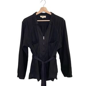 Isabel Marant Etoile Linen Blend Utility Jacket Zip Front Belted Black 6 Medium