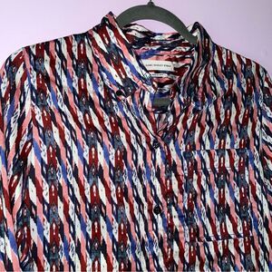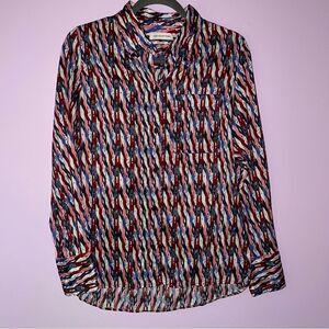 Isabel Marant Etoile M Top Colorful Print Button Collar Long Sleeve Blouse